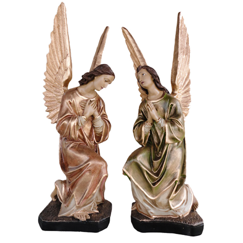 Fabricadas em resina com acabamento em pintura fina feita artesanalmente com tinta acrílica a base de água, com mantos vermelho e azul. Imagens para ambiente interno.